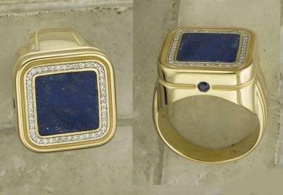 БРИЛЛИАНТ КР-57 3/6 44шт.,0.2ct # ЛАЗУРИТ КВАДРАТ 0/0 1шт.,4.3ct 12*12*0 # САПФИР (H) КРУГ 2/2 2шт.,0.09ct 2.25*0*0